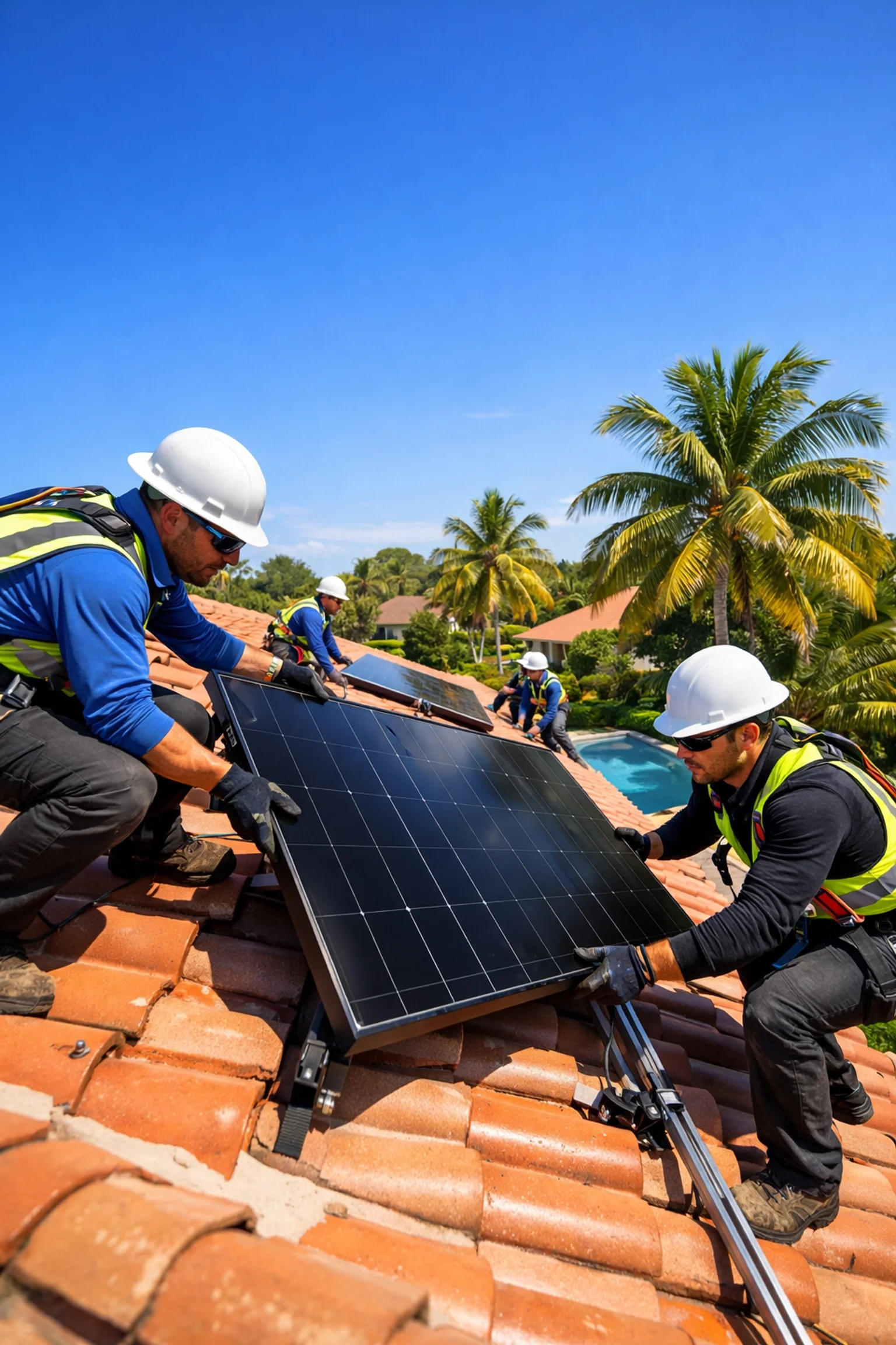 Professional solar installation crew from Achieve Solar LLC installing panels on a residential roof in Central Florida.